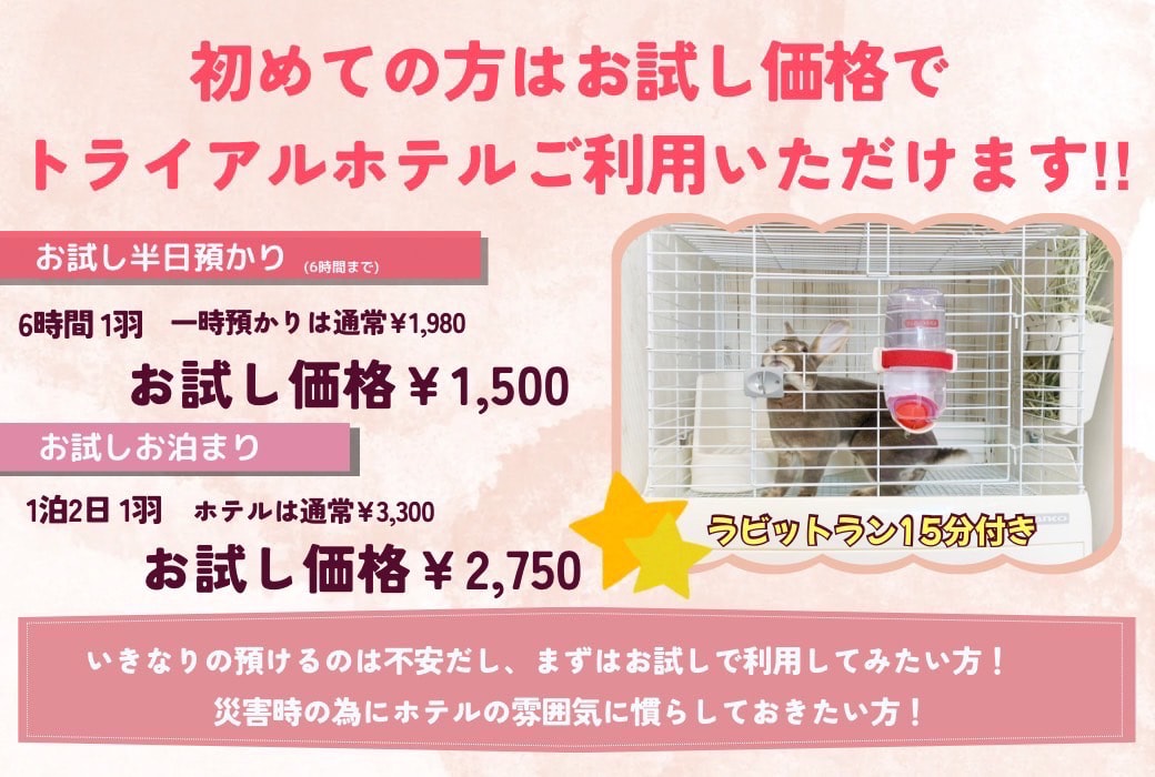 長時間の外出や旅行など、どうしてもうさちゃんを連れていけないときも「ペットホテル」なら安心。